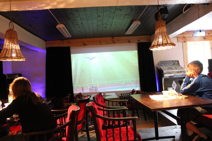 Kvinnekampen som egentlig skulle være klokken 20:30 har blitt flyttet fram til klokken 18:00! Kampen kunne man se hos den lille kafé- og interiørbutikken 3 venner. 3 venner er medlemmer her hos Trollheimsporten, og du kan lese mer om dem her! Det var et lite oppmøte foran storskjermen, attpåtil var det folk på kaféen og interiørbutikken!