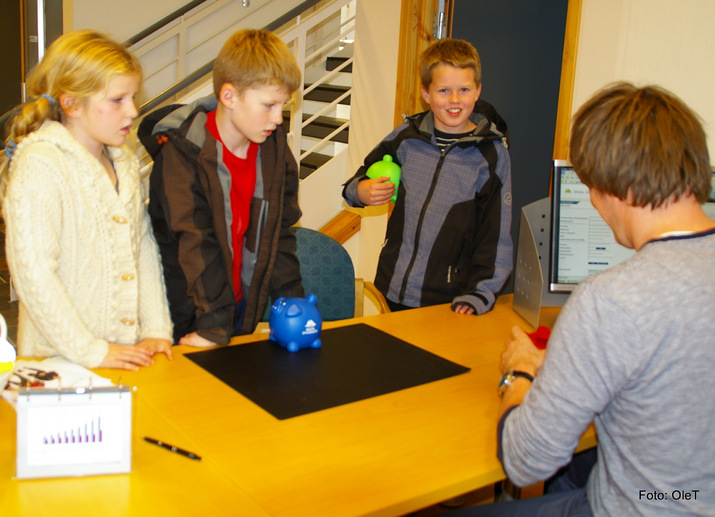 Søsknene Nora, Martin og Edvard Bolme Fjerstad kom i samla flokk med sparegrisene sine. Nora meinte at grisen hennes var tyngst!