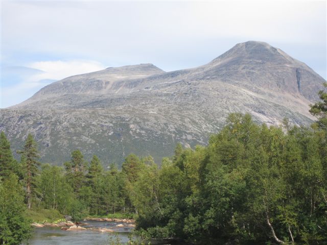 Trollhøtta. Den grå streken ned fra toppen er turistløypa